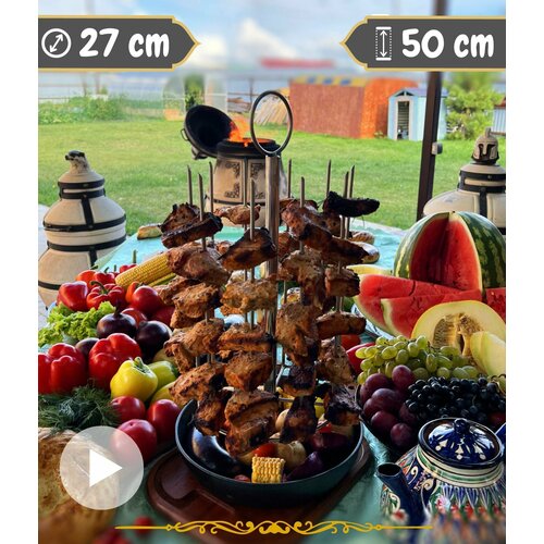 Подходит для Тандыров с диаметром горла от 27 см, высотой без крышки от 50 см.