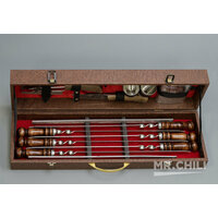 Все инструменты упакованы в удобный чехол из дерева, который защищает их от повреждений и загрязнений. Длина чехла составляет 55 см,Шашлычный что позволяет удобно хранить и переносить набор.
