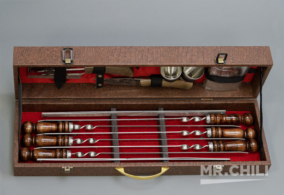 Шашлычный набор "МистерЧили №5" - это многофункциональный комплект, который станет незаменимым помощником на пикнике или отдыхе на природе.
