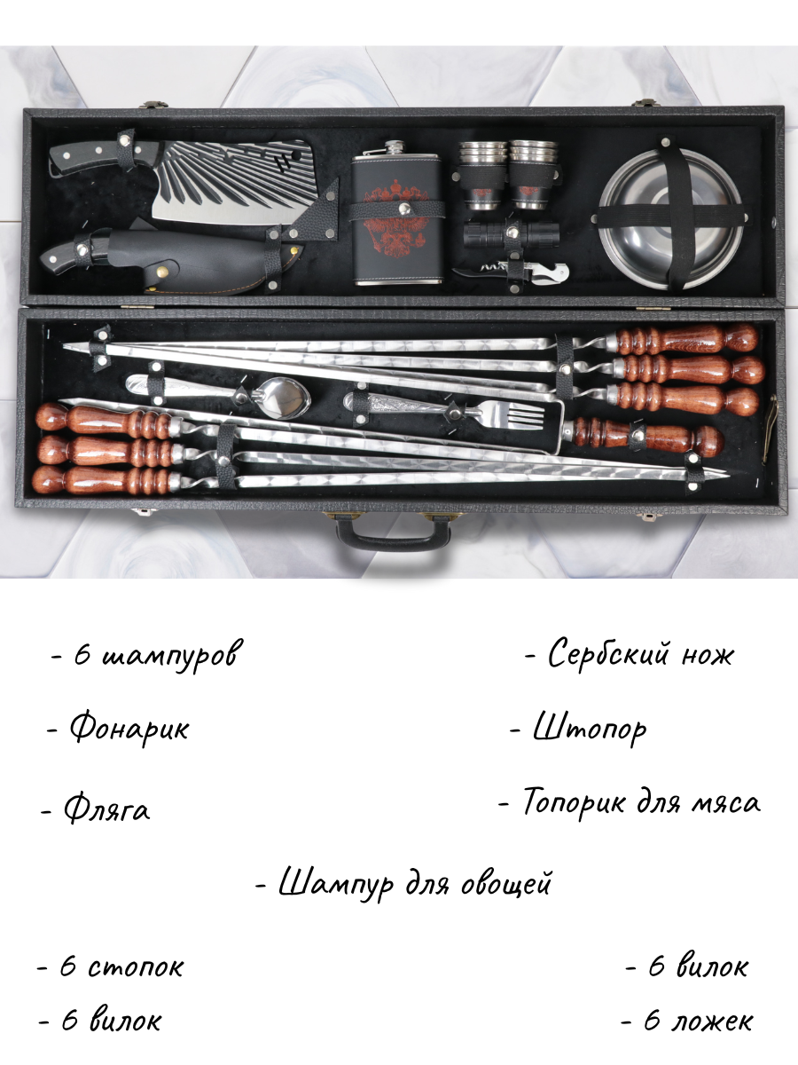 Купить Шашлычный набор с шампурами подарочный в кейсе с доставкой по всей России.