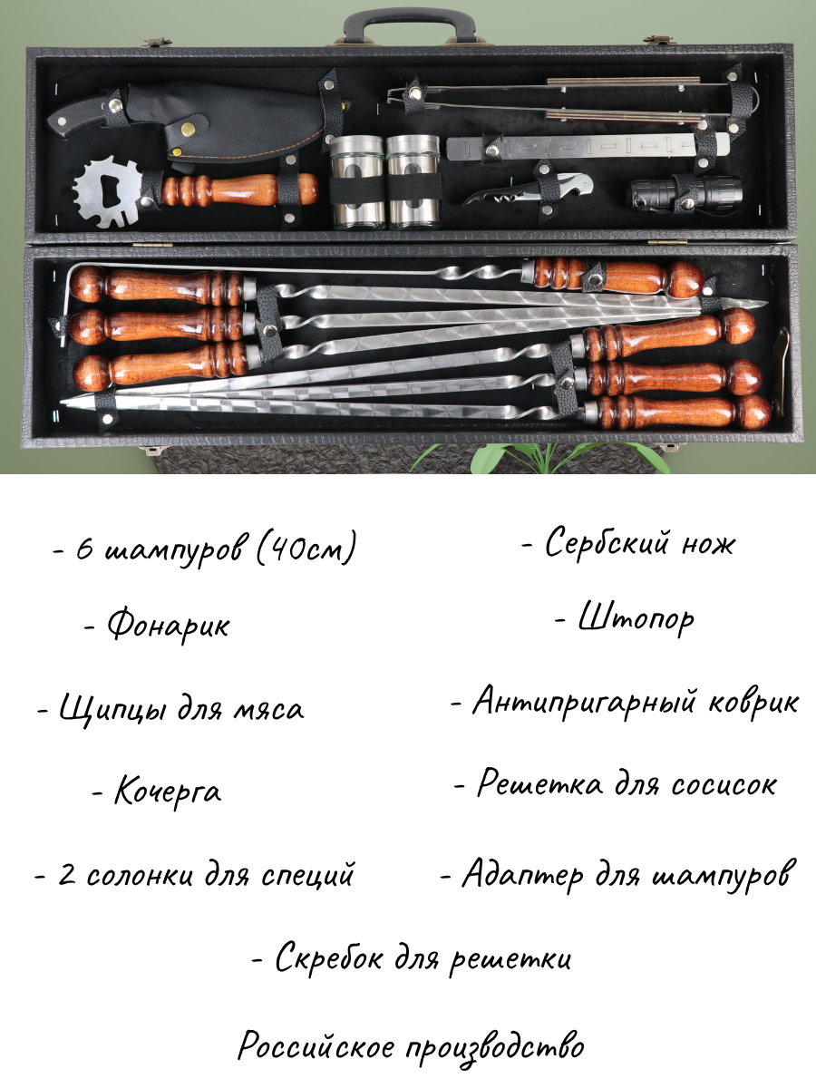 Купить Шашлычный набор с шампурами подарочный в кейсе с доставкой по всей России.