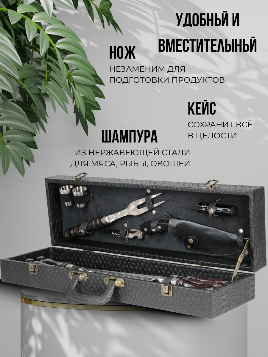 Купить Шашлычный набор с шампурами подарочный в кейсе с доставкой по всей России.