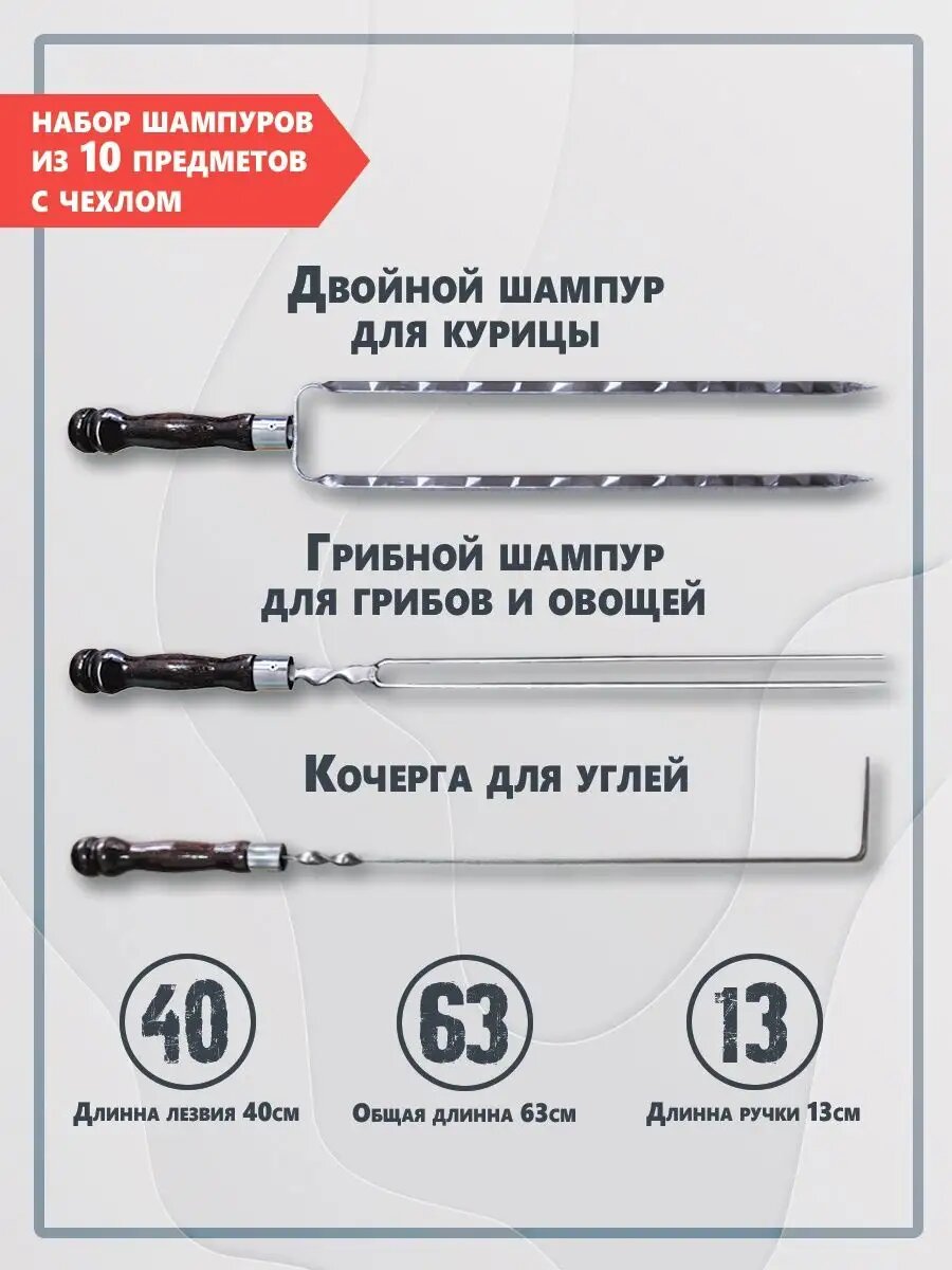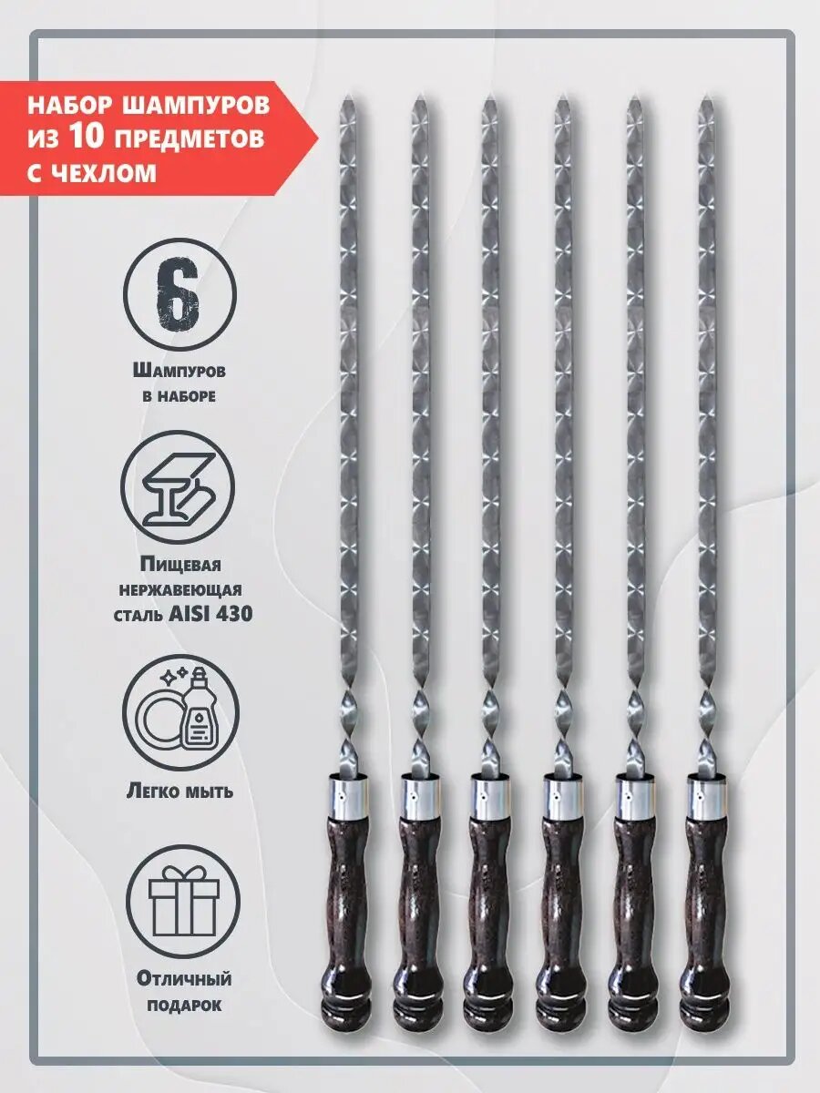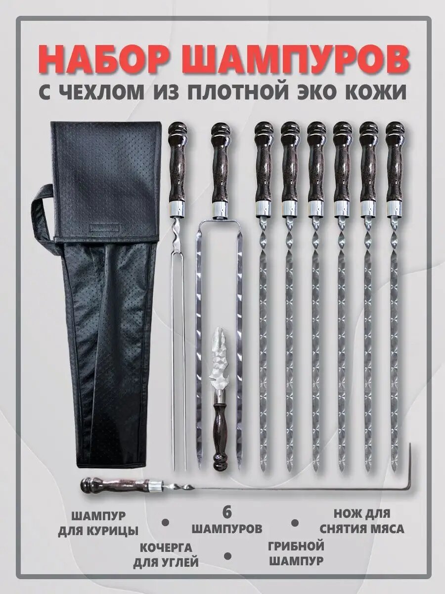 Набор шампуров с деревянной ручкой из нержавеющей стали выполнены из качественных и прочных материалов. Шампура с деревянной ручкой подходят для мангала, гриля, тандыра, а также для любителей отдыха на природе и барбекю. Набор для пикника сделает ваш отдых незабываемым и вкусным. Шампура уже заточены. Шампура из нержавеющей стали справятся со всеми видами мяса и овощами. Шампура для люля-кебаб, для вкусного и сочного шашлыка порадуют гурманов. Подарочный набор шампуров для шашлыка порадует каждого мужчину. Шашлычный набор - отличный подарок папе на др. Подарок начальнику и мужу на др. А набор для шашлыка в непромокаемом чехле, станет незаменимым атрибутом для кемпинга, рыбалки и отдыха на природе. Шампура металлические из пищевой, нержавеющей стали в чехле 8 штук либо 6 штук на Ваш выбор. Чехол для шампуров с прочной ручкой из водоотталкивающей ткани и набор шампуров с деревянной ручкой станет незаменимым другом семьи на семейных ужинах, праздниках или на приятных встречах с друзьями, коллегами. Подарочный набор для шашлыка порадует любого гурмана. Набор шампуров подарочный на подарок отцу на день рождения, подарки гостям. Как подарочный набор для дедушки, подарок молодым. Как мужские наборы на день рождения, подарочный набор отцу. Такой подарок можно делать на любой случай. Будь то 23 февраля, 3 мая, день рождения, новый год, или годовщина свадьбыНАС ищут ПО следующим запросам: гриль-мангал, набор для шашлыка кизляр, picnic, товары для отдыха и кемпинга, товары для рыбалки в для отдыха, набор для кемпинга, шашлык набор, набор для барбекю и мангала, рыбалка подарок, набор для мангала подарочный, подарок офицеру, urv, шампура для люля-кебаб, с днем отца, подарок на 23 февраля брату, подарок начальнику с днем рождения, брату на 23 февраля,