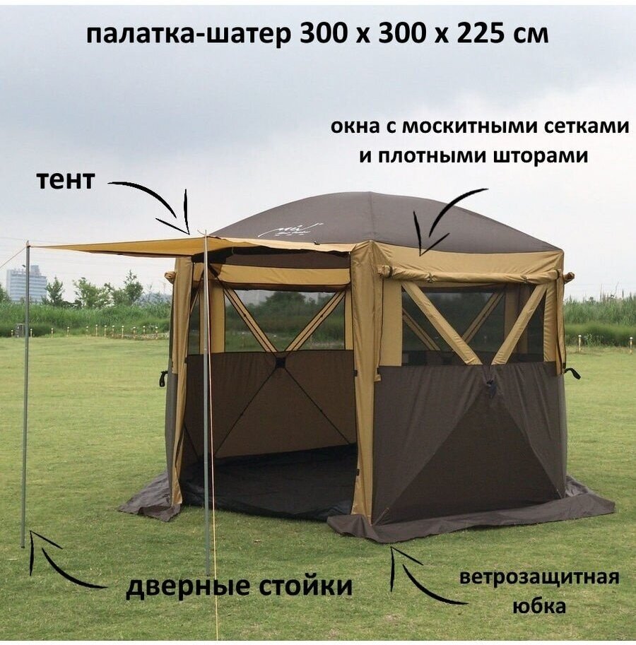 Шатер автоматический шестиугольный 300х300х225см, цвет хаки, 1 вход, дуги стекловолокно, 14 кг. MIMIR2905-S: сравнение цен, характеристики, фото, актуальное наличие и цены.