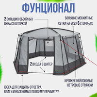 Купить Шатер туристический с москитными сетками на дверях TREK PLANET Siesta Tent, Тент для отдыха на природе. На 12 человек. Обзорные окна. Чехол с доставкой по всей России.