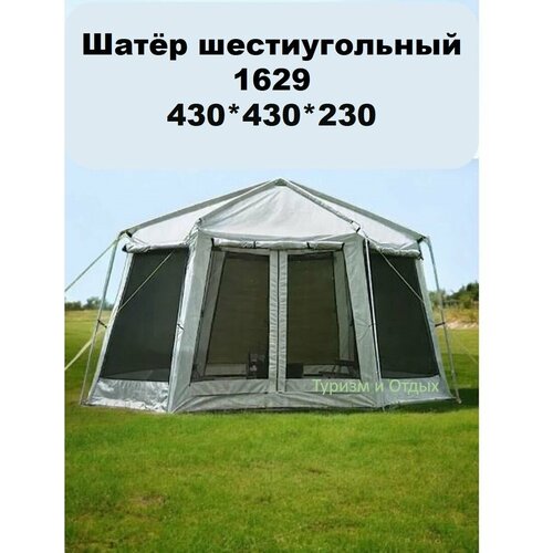 Представляем вашему вниманию шестиугольный шатер палатка большого размера, модель 1629, который станет идеальным решением для активного отдыха на природе. Этот туристический шатер expertly спроектирован для обеспечения максимального комфорта и защиты от неблагоприятных погодных условий, что делает его отличным выбором для кемпинга, пикников, дачных и фестивальных мероприятий.