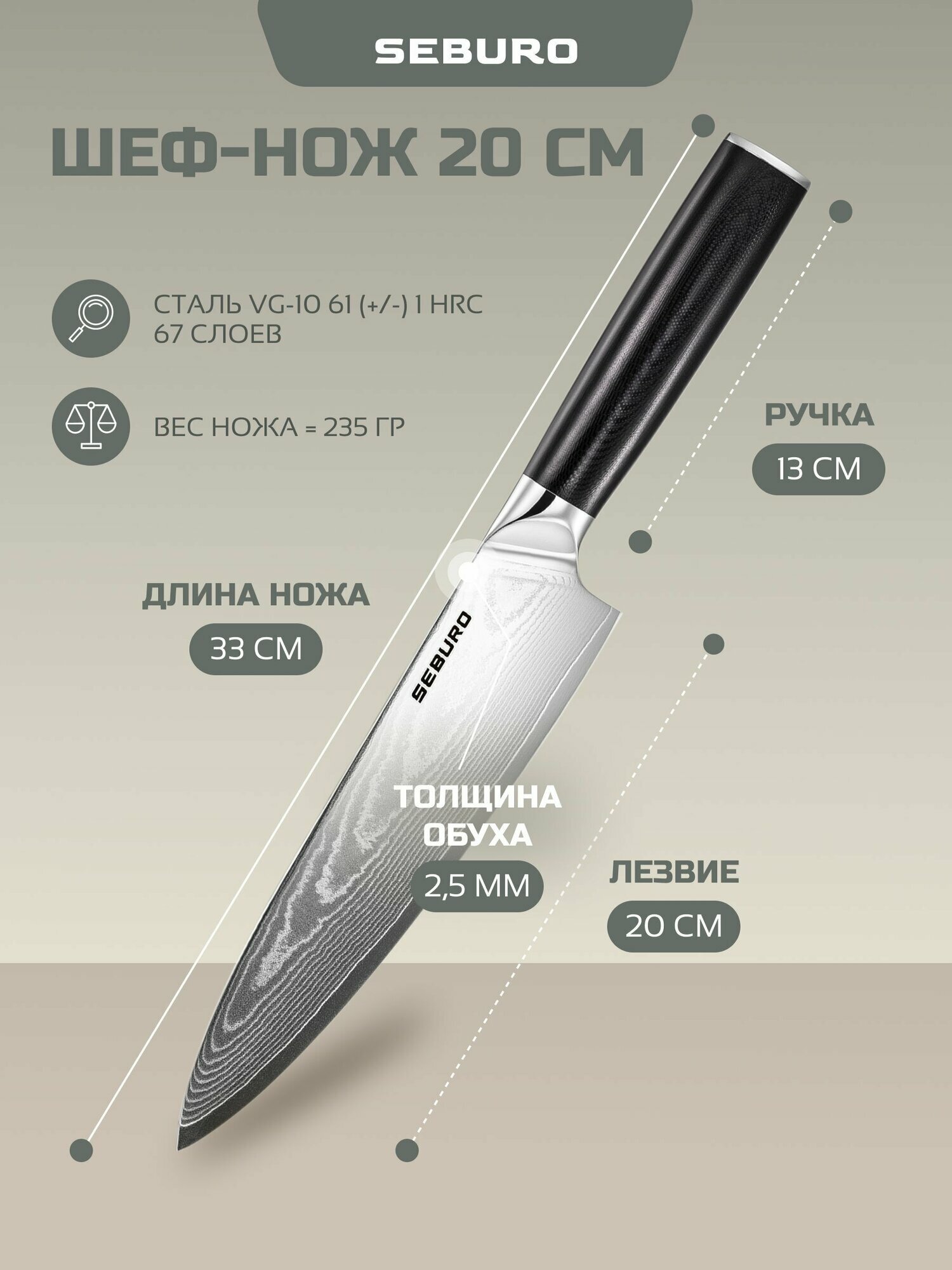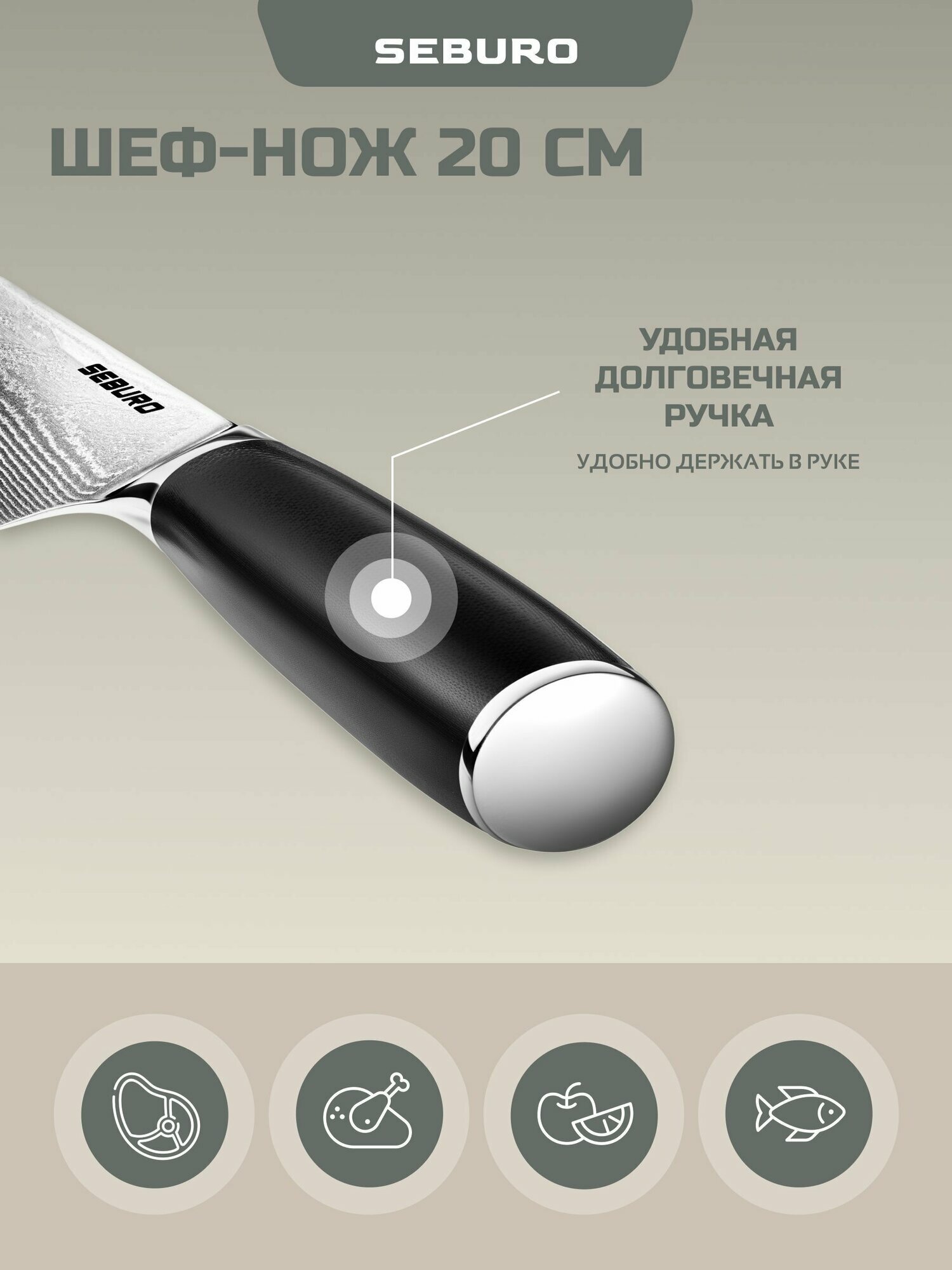 SEBURO также предлагает превосходную упаковку для своих ножей, что делает их отличным подарком для любителей кулинарии.