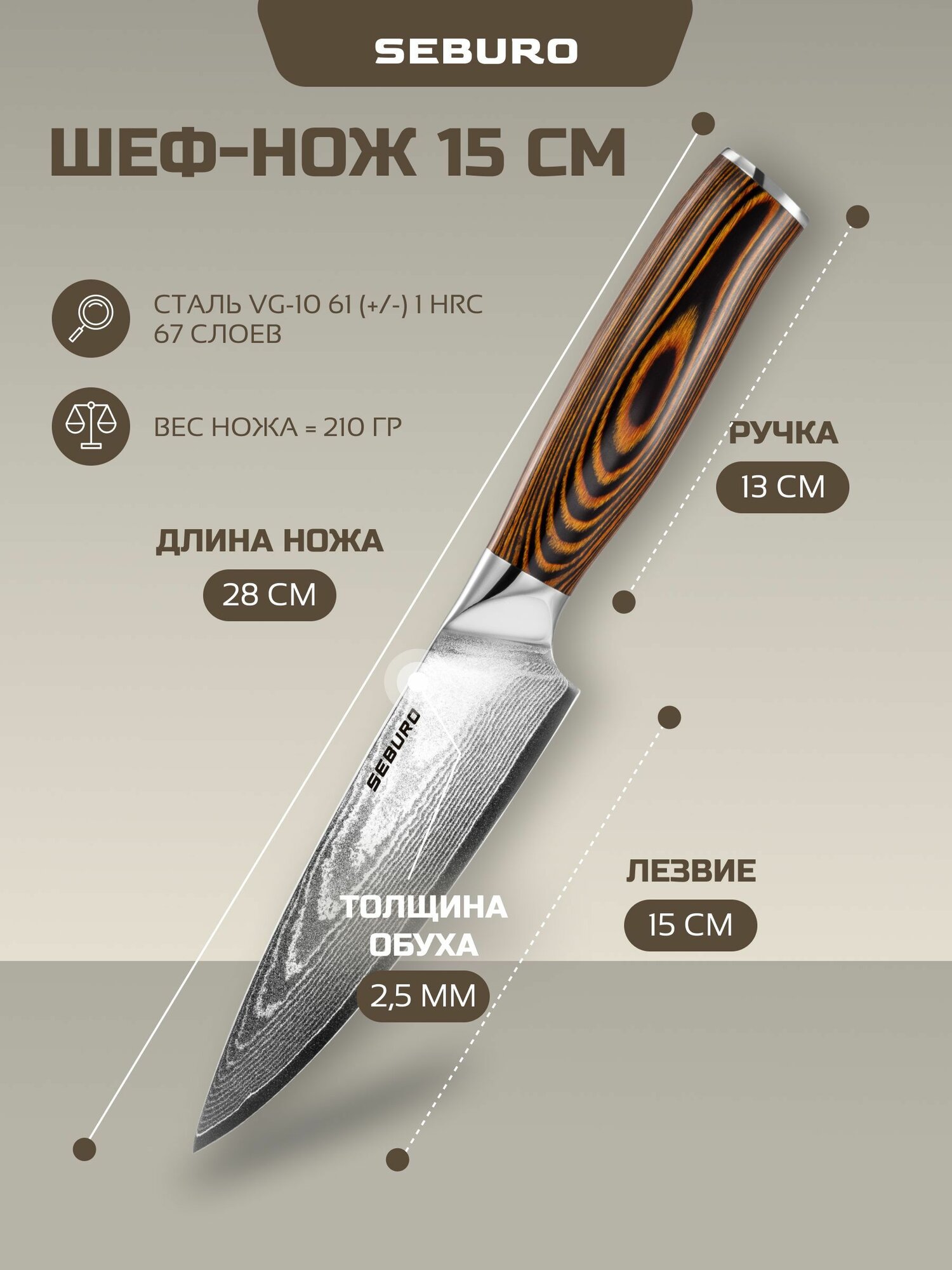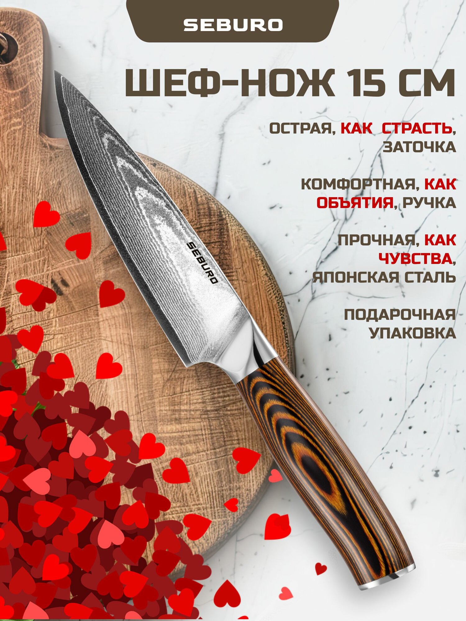 SEBURO также предлагает превосходную упаковку для своих ножей, что делает их отличным подарком для любителей кулинарии.