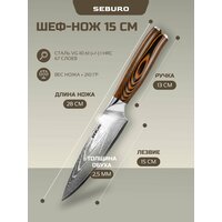 Шеф-нож длиной 15 см - это компактный и удобный инструмент для мелкой нарезки продуктов. Он идеально подойдет для тех, кто готовит небольшие порции еды или предпочитает использовать нож для чистки овощей и фруктов.