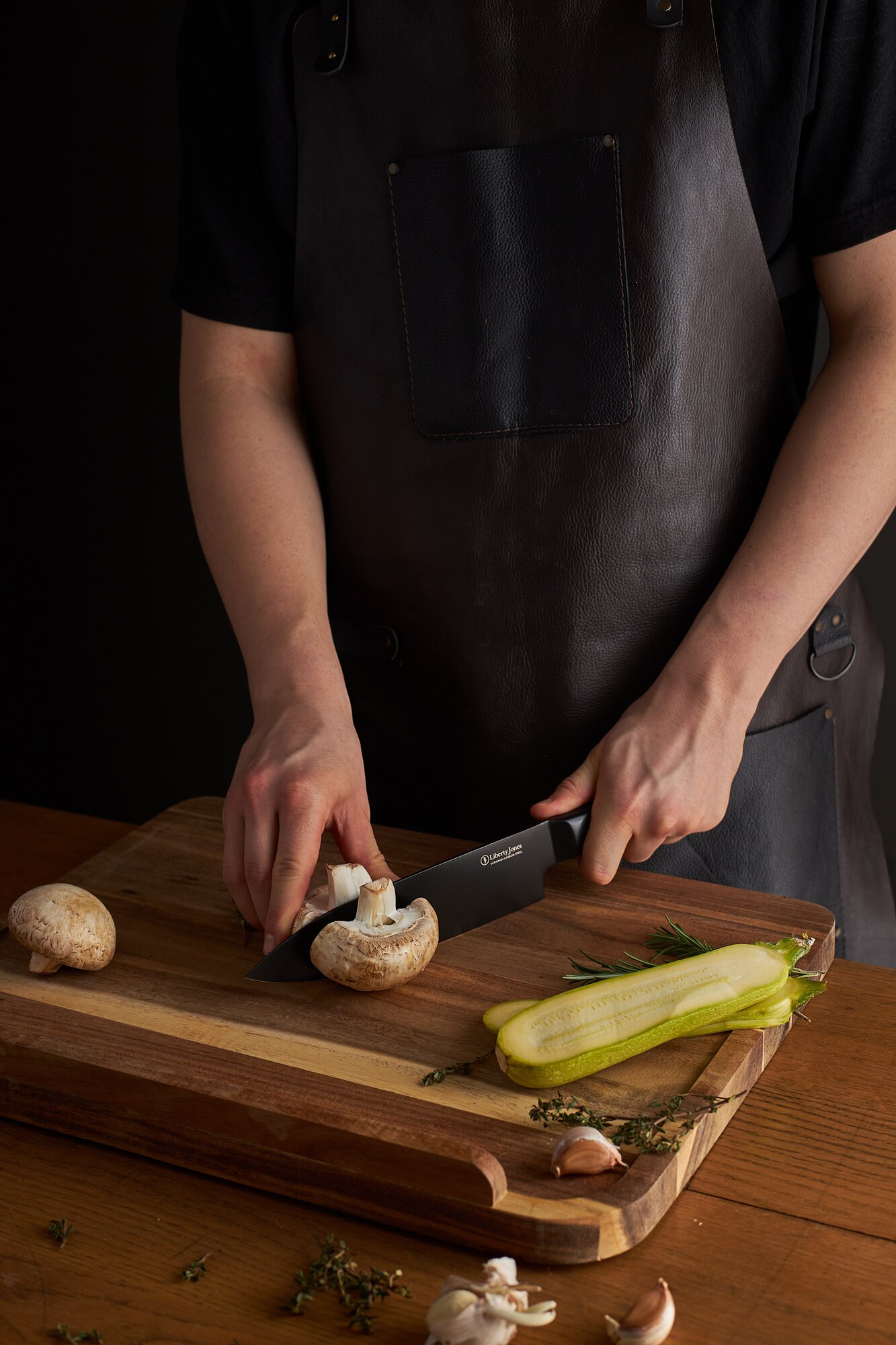 Шеф-нож из углеродистой стали 5Cr15Mov Carbon премиального качества от бренда Liberty Jones: универсальный инструмент, который идеально подходит для большинства кулинарных задач: очистка, рубка, измельчение, шинковка самых разных продуктов.