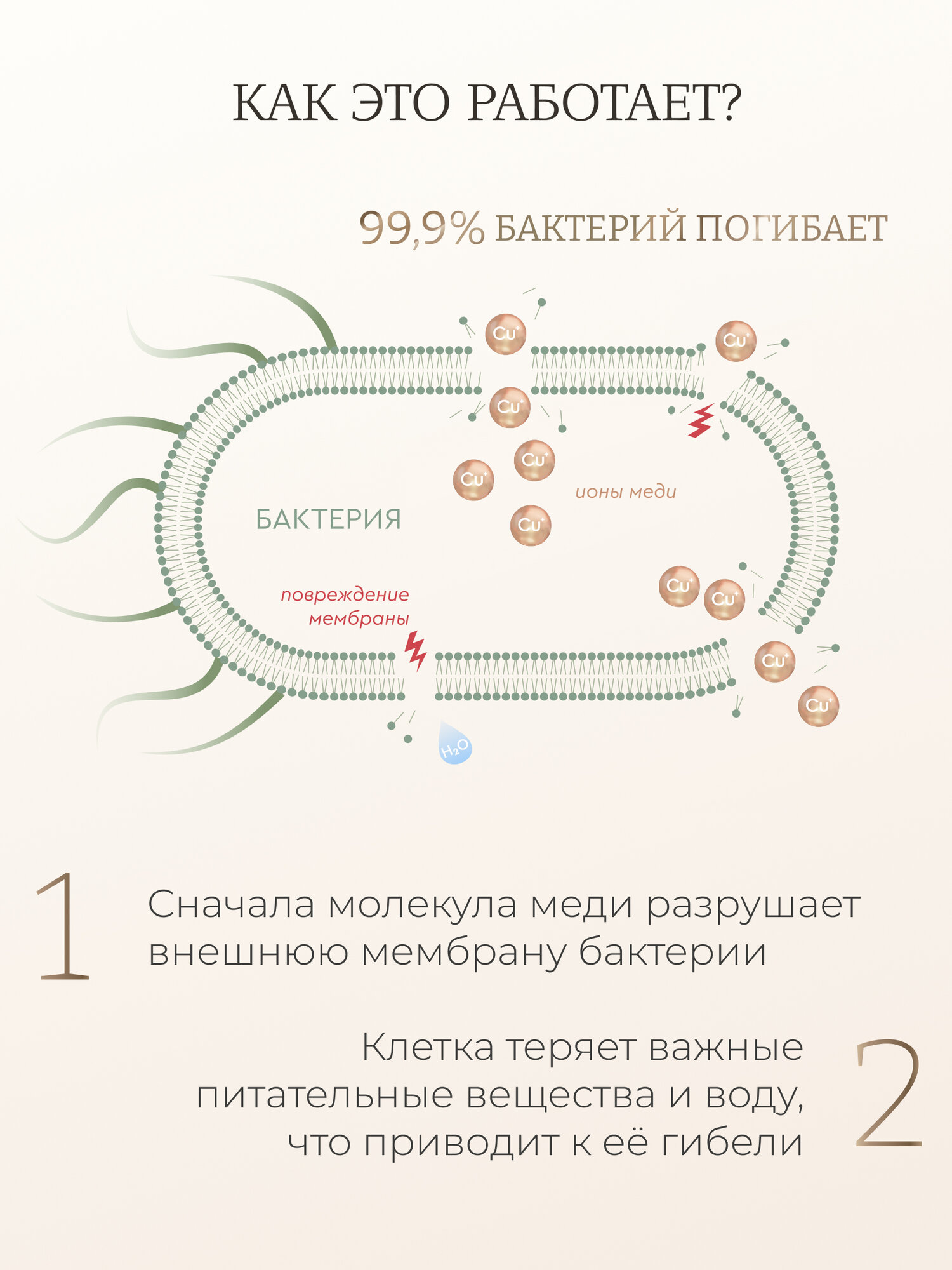 - Медь в составе наволочки уничтожает 99,9% бактерий и защищает кожу от их негативного воздействия и способствует: