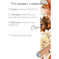 Декоративные наклейки на свадьбу 12 шт.; Карточки для схемы рассадки столов 10 шт.; Плакат свадебный рассадка 1 шт.