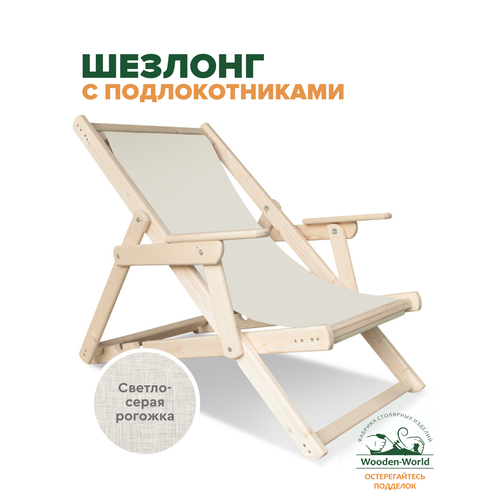 Купить Шезлонг для дачи складной деревянный с подлокотниками, ткань светло-серая с доставкой по всей России.