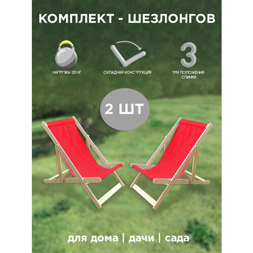 Купить Шезлонг для дачи складной деревянный «Симфония» для дома, дачи, сада, комплект лежаков 2 шт, цвет красный с доставкой по всей России.