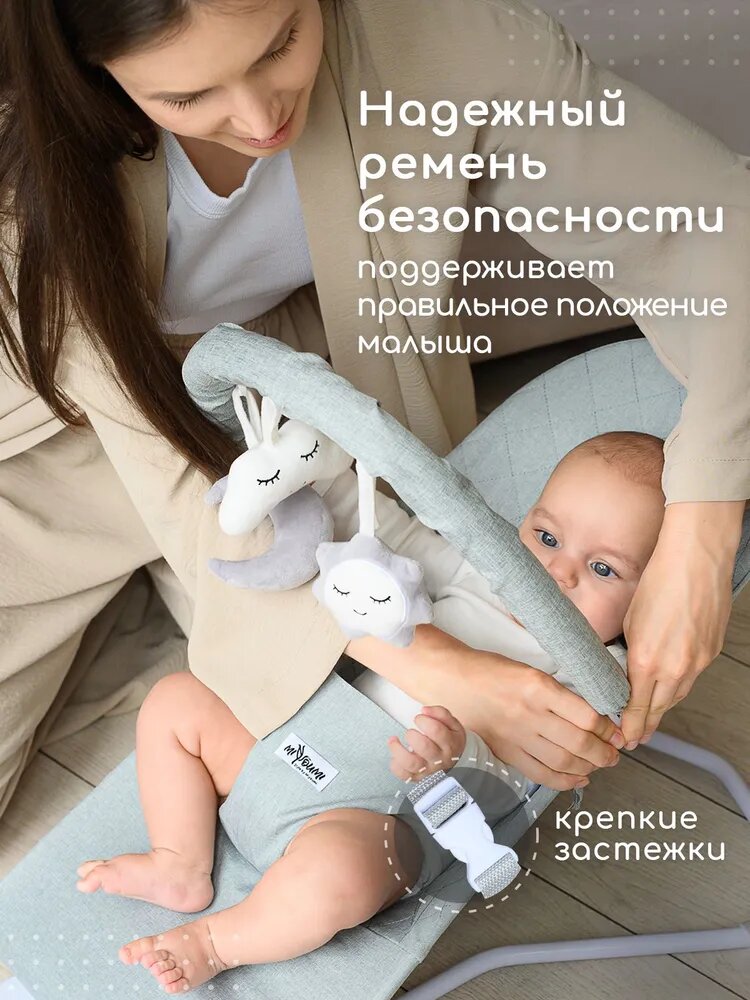 Качели люлька для новорожденных - идеальное место для вашего малыша! Удобное кресло-качалка обеспечит комфортный отдых и безопасность вашему ребенку. Наш шезлонг детский для новорожденных подходит для младенцев с 0 мес до 15 кг, а также имеет функцию укачивания, которая поможет успокоить и уснуть малыша. С шезлонгом для новорожденных ваш ребенок будет чувствовать себя как в гнезде, благодаря уютному дизайну и мягким материалам. Кресло-качалка также оснащено дугой с игрушками, которая развлечет и позабавит малыша. Не упустите возможность создать уютное место для вашего малыша с нашим шезлонгом для новорожденных. Приобретайте качественный товар для вашего малыша уже сегодня!