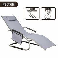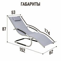 Конструкция: Основа из пружинной стали с антикоррозийным покрытием и мягкими накладками для амортизации (можно качаться не повредив напольное покрытие), каркас лежака из алюминия, полотно из текстилена. Шезлонг анатомический с подголовником (крепится на липучке). Боковой карман с двумя отделениями (крепится на липучке). Поручни подлокотников покрыты приятными мягкими накладками из эко-пластика. Раскачивание лёгкое, без усилий, с длительным затуханием. При желании можно не раскачиваться и использовать как обычный лежак, т. е. раскачивание легко контролировать. Поставляется в разобранном виде. Требует сборки.