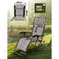 Лежак имеет эргономичную конструкцию с несколькими положениями, легко и быстро открывается. Компактная конструкция подходит для использования в саду, у бассейна, на пляже или на балконе. Шнуры, соединяющие сиденье с прочной стальной рамой, повышают комфорт и функциональность кресла. Система блокировки позволяет плавно скользить в любое наклонное положение с углом наклона 0-160 градусов в соответствии с вашими предпочтениями, обеспечивая комфортный отдых.