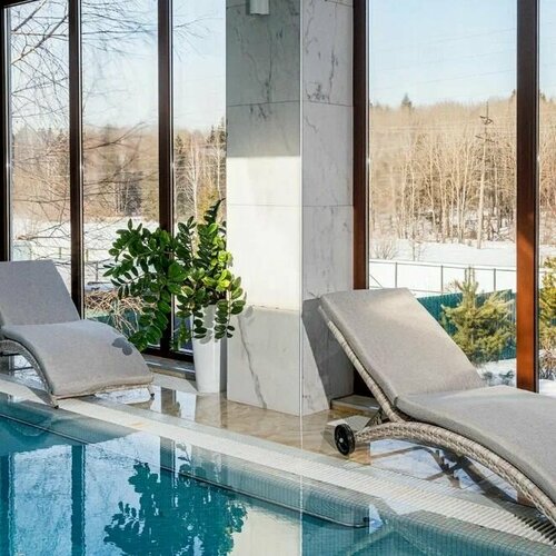 Материалы: Материал шезлонга - искусственный ротанг первой категории Плетение - двойное полукруглое Каркас - сталь Чехол на подушки - полиэстер (водоотталкивающая ткань) Наполнитель подушек для сидения - поролон