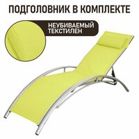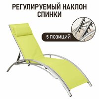 Каркас из алюминия, полотно из текстилена. Шезлонг анатомический с регулируемым наклоном спинки (5 позиций). Подголовник крепится на удобной высоте. Поставляется в разобранном виде. Требует сборки.