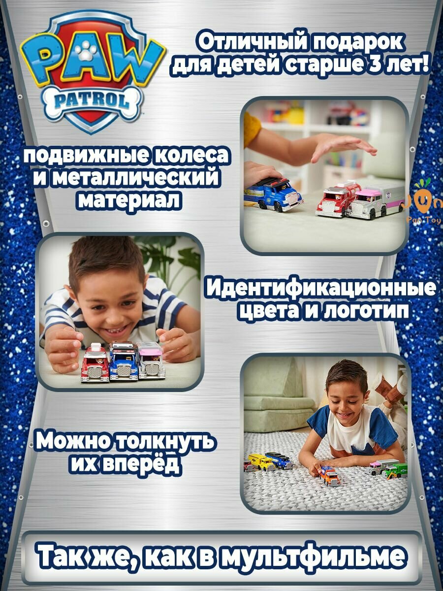 Щенячий патруль Spin Master Paw Patrol 1:55 True Metal Car Toy 6065775 / 6 металлических игрушечных машинок в масштабе 1:55, подходящие для подарков на день рождения мальчикам старше 3 лет: сравнение цен, характеристики, фото, актуальное наличие и цены.