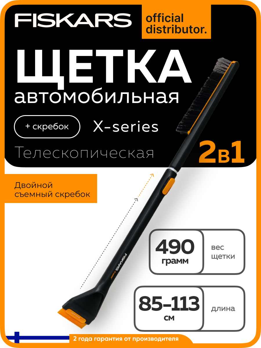 Щетка автомобильная для снега FISKARS 85-113 см телескопическая со скребком X-series (1078493): сравнение цен, характеристики, фото, актуальное наличие и цены.