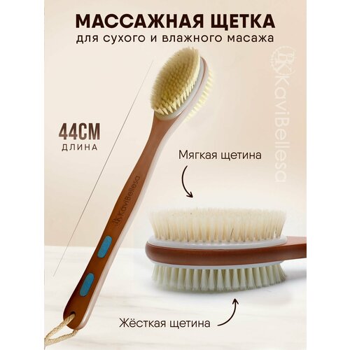 Уникальная двусторонняя масажная щетка для тела. Щетка для массажа тела имеет мягкую и жесткую щетины. Массажную щетку можно использовать как для сухого массажа тела, так и для влажного. Влажный массаж тела проводят с нанесением скраба или геля для душа. Сухой массаж считается более жестким, но и эффективным. Влажный метод массажа понравится чувствительной коже и точно не травмирует ее. Антицеллюлитная щетка для тела отшелушивает мертвые клетки, делает кожу более упругой и эластичной. Массаж щеткой - отличное средство от целлюлита. Также массажная щетка подойдет для бани и душа. Массаж щеткой улучшает кровообращение и лимфоотток. Только натуральные материалы: натуральная щетина из кабана, бамбук. Прекрасный массажер для тела. Длинная эргономичная ручка для массажа спины, шеи и плеч, спины, ног и головы. Также щетка предупреждает врастание волос. Профессиональный антицеллюлитный массажер у Вас дома. Дренажная щетка это отличный подарок подруге, маме, сестре