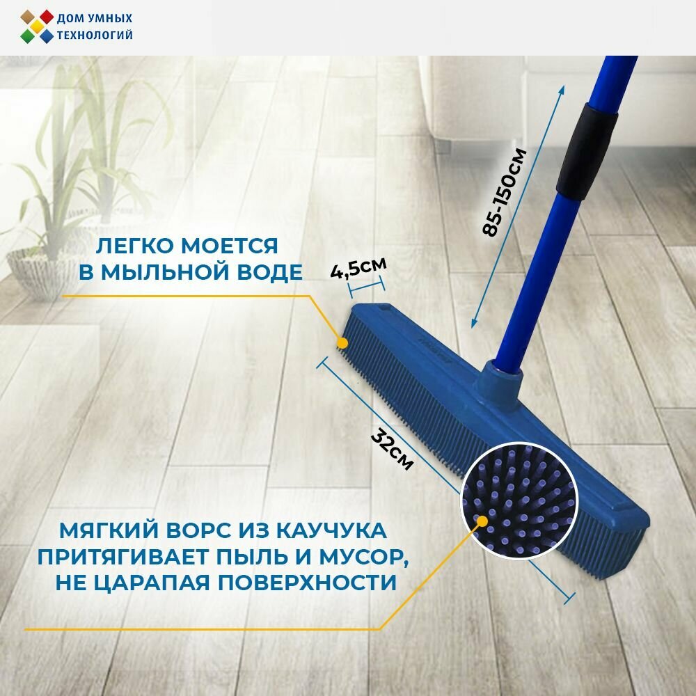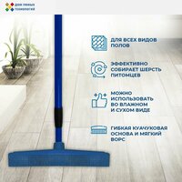 Благодаря электростатическому эффекту, мелкие пылинки и песчинки, выметаемые с пола, не поднимаются в воздух, а «примагничиваются» к щетке, поэтому она не пылит как веник. Гладкие открытые поверхности лучше подметать сухой щеткой, ковролин — и сухой, и влажной по желанию.