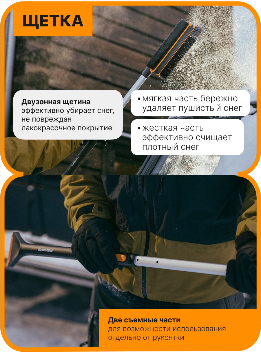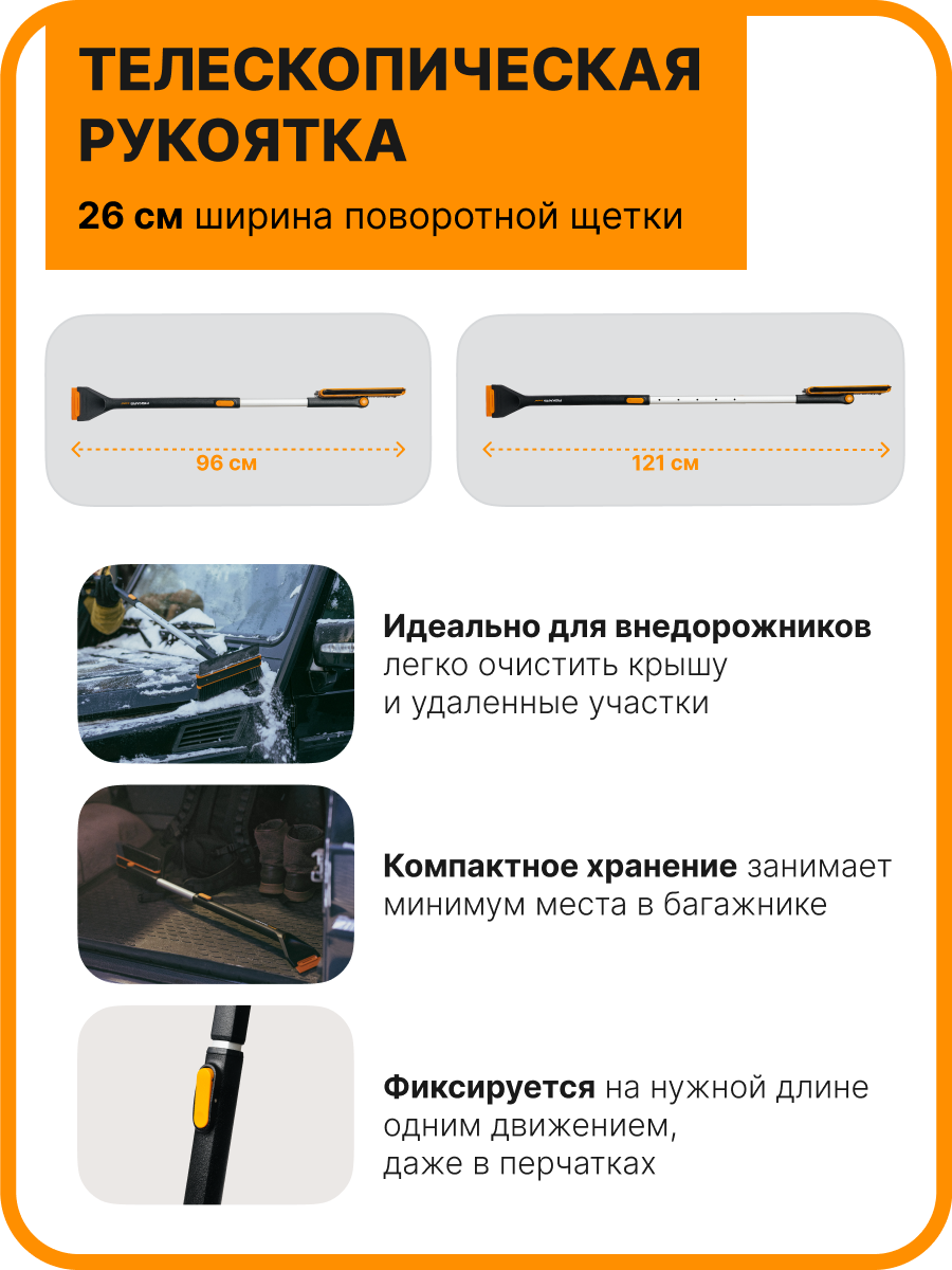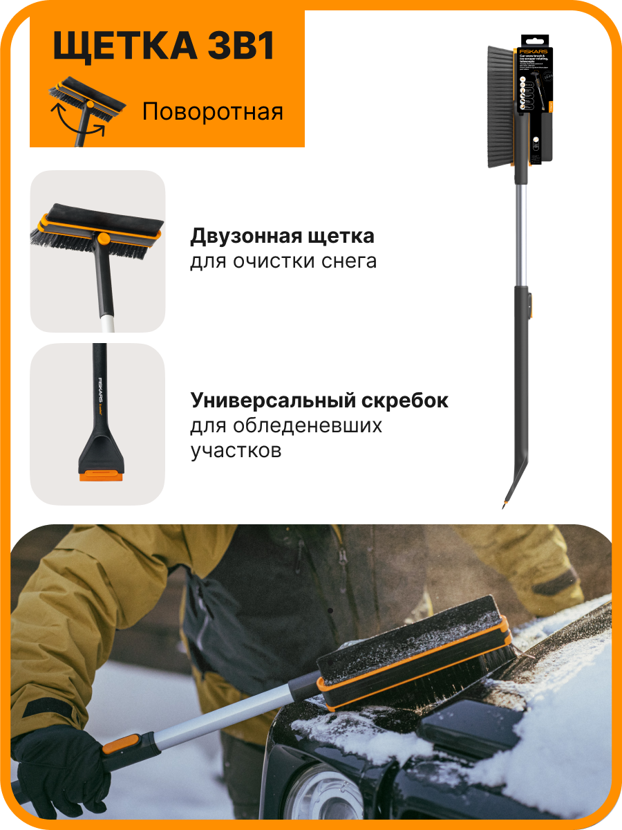 Купить Щетка автомобильная для снега FISKARS 96-121 см телескопическая со скребком X-series (1078492) с доставкой по всей России.