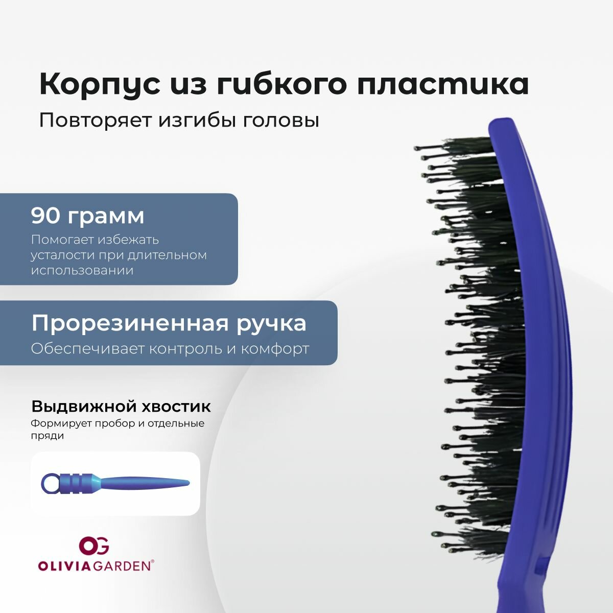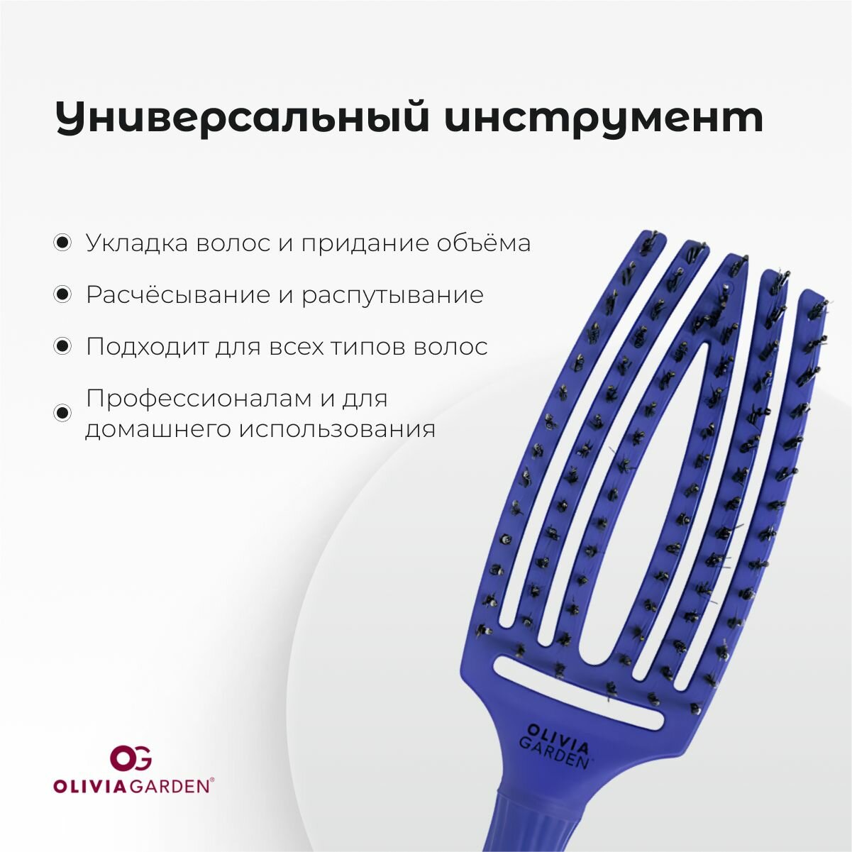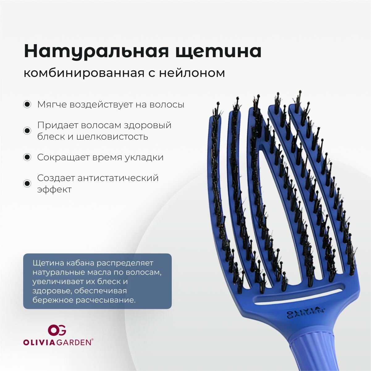 Щетка для волос Olivia Garden Fingerbrush Care Iconic Boar&Nylon с натуральной щетиной и ионизированными нейлоновыми штифтами, с закругленными кончиками, делают волосы более блестящими, гладкими и шелковистыми. Такая комбинация позволяет использовать данную щетку в работе с любым типом волос.