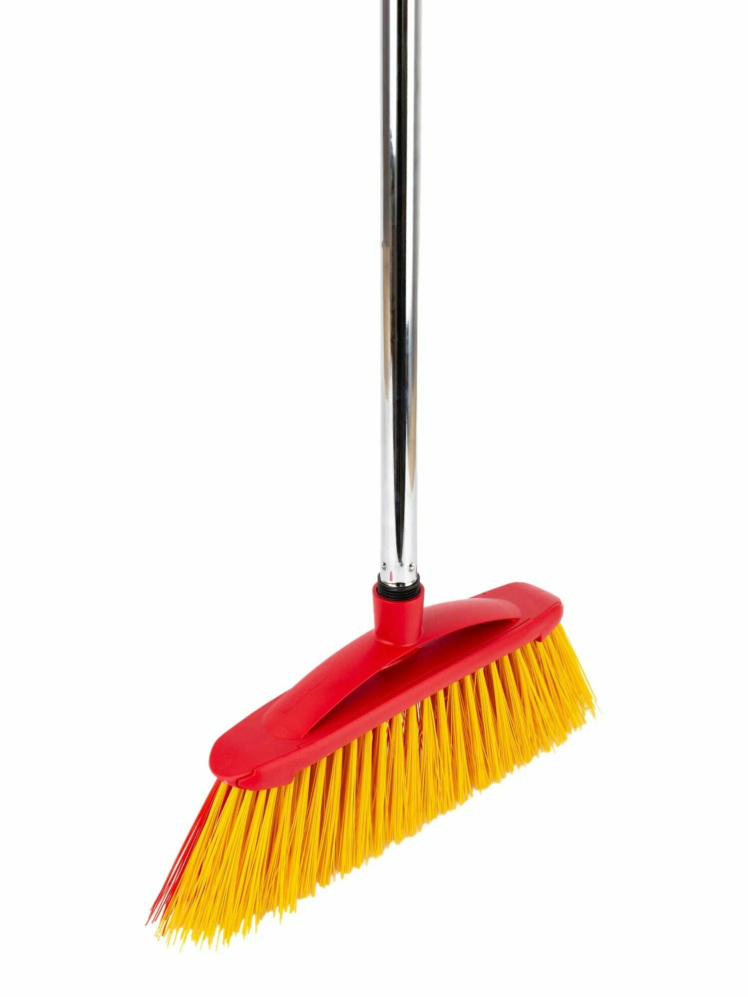 Легкая щетка для улицы от немецкого бренда Виледа эффективно собирает мусор, высокая эффективность достигается за счет комбинирования 2 типов ворса. Удлиненный нерасщепленный ворс легко промывается от загрязнений и удобен для уборки на улице. В процессе производства щетки используется 47% рециклированного пластика. Щетка Гарден 2в1 прочная и легкая: блок из облегченного пластика с дополнительными ребрами жесткости делают щетку долговечной и удобной в использовании. Ворс щетки (пэтф) устойчив к воздействиям внешней среды (к износу, изгибу), не токсичен (в отличии от ПВХ). Щетка укомплектована телескопической ручкой, есть петля для подвеса на крючок. Vileda® – марка №1 на европейском рынке в области товаров для уборки, входит в группу компаний «Фройденберг Групп» (Германия). Изделия компании Виледа созданы с заботой о потребителе и об окружающей среде. Товары отличаются высочайшим качеством, легкостью в использовании и чрезвычайной долговечностью. Изделия компании защищены патентами. Тип: щетка. Уличная: да. Назначение: универсальное. Наличие ручки: есть. Материал рукояти: пластик. Длина ручки: 1300 мм. Материал корпуса: пластик. Материал щетины: ПЭТ. Цвет корпуса: серый. Цвет щетины: красный. Комплектация: .