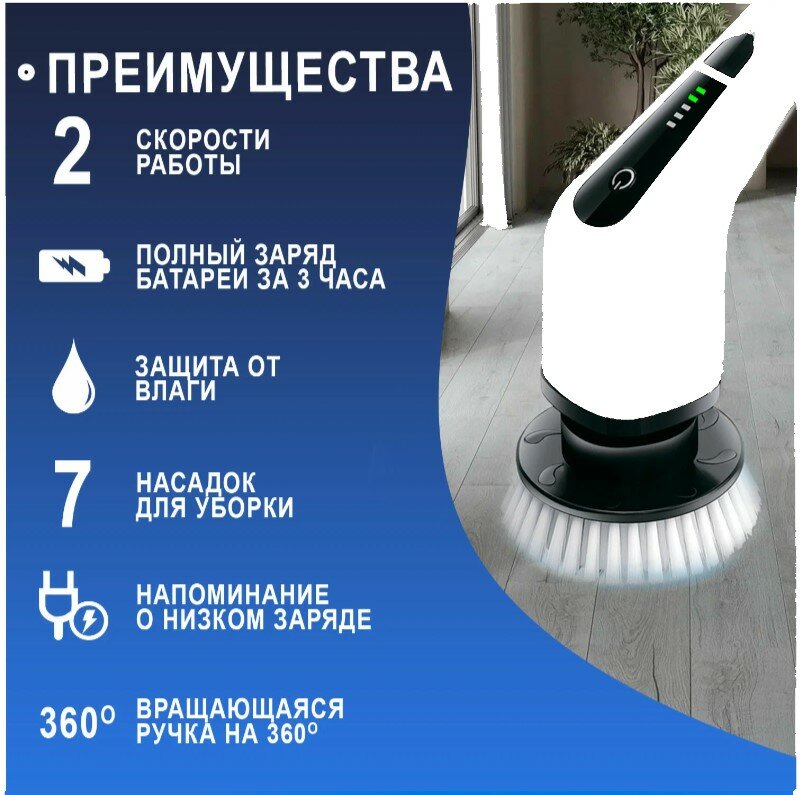 Универсальная, беспроводная электрическая щетка, которая облегчит вам уборку и сделает ее комфортной.