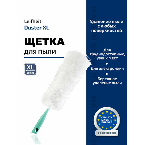 Щетка Duster XL Leifheit создана специально для мягкой уборки пыли с любых поверхностей, включая особо хрупкие: ламели оконных жалюзи, экраны мониторов и телевизоров, произведения искусства. Ее основные характеристики: - эргономичная ручка, повышающая удобство применения; - особо мягкие, сверхтонкие волокна щетины из полимерного волокна, способные адаптироваться к поверхностям любой конфигурации; - антистатические свойства, исключающие электризацию обслуживаемых поверхностей и притягивание микрочастиц пыли; - компактные размеры и небольшой вес; - возможность уборки в труднодоступных местах; - экологическая безопасность и долговечность.