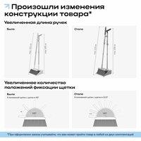 Веник для пола имеет вращающуюся на 180 градусов щетку, которая выметает грязь из углов и проникает в труднодоступные места. Густая ПЭТ-щетина в 4 ряда разной жесткости эффективно собирает пыль и мелкий мусор.