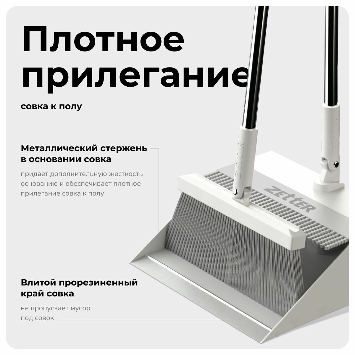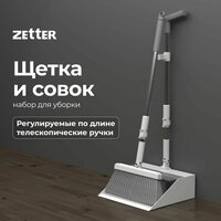 Купить Щетка с совком Zetter L, комплект для уборки, телескопические ручки, цвет серый с доставкой по всей России.