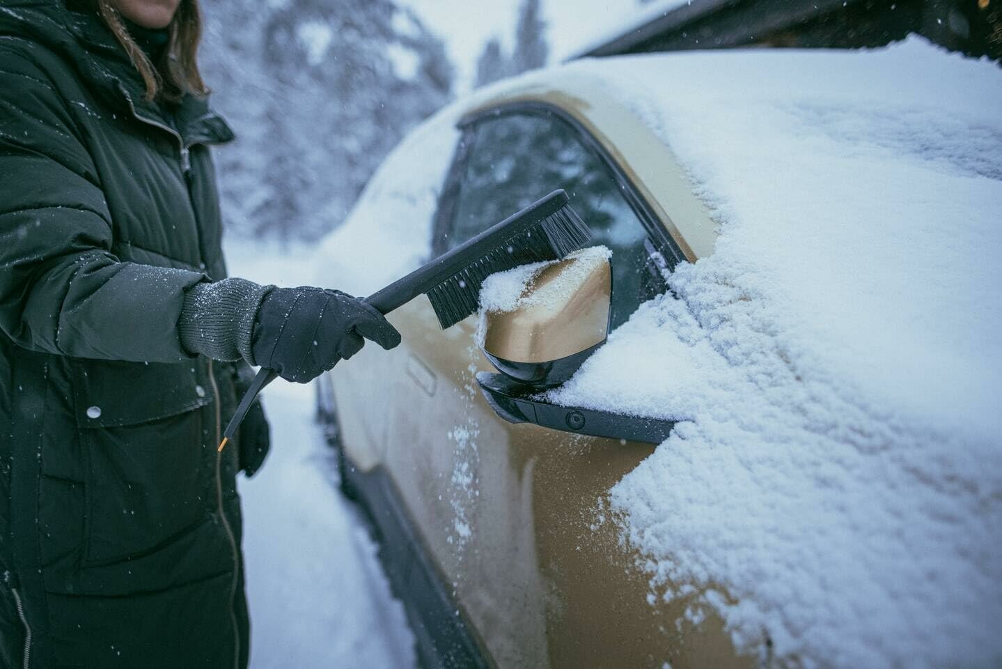 Универсальный съемный скребок: можно отсоединить и перевернуть скребок, чтобы он оптимально подходил для различных зимних условий. Твердый край скребка для соскабливания льда, а мягкий силиконовый край - для вытирания воды и слякоти.