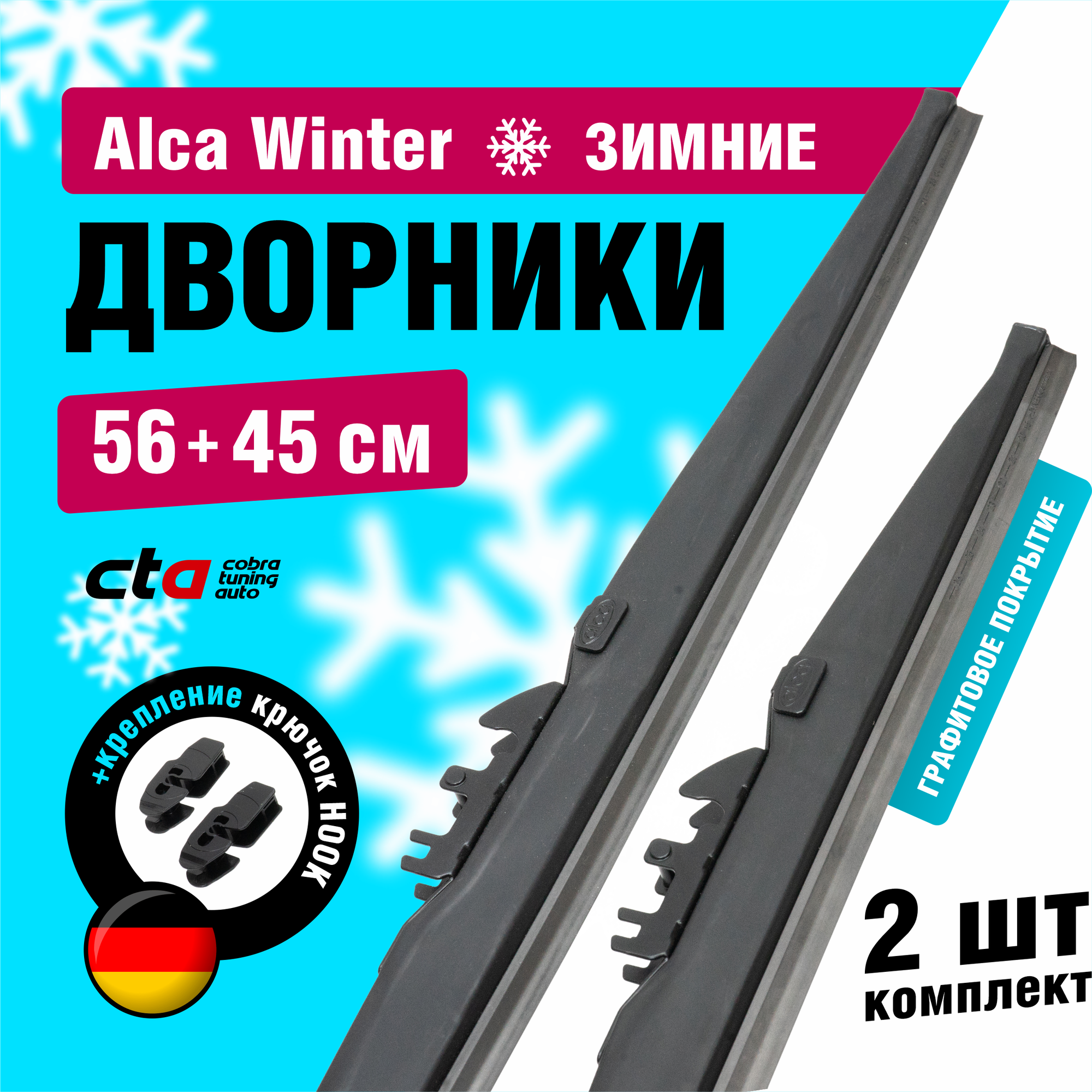 Щетки стеклоочистителя 56 + 45 см, зимние Алка Винтер, дворники для автомобиля в чехле, комплект 2 шт. (водительский и пассажирский автодворник).