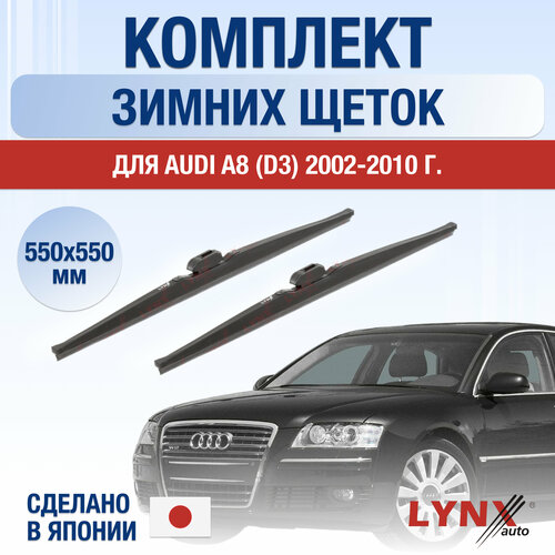 Зимние автомобильные дворники 550/550мм LYNXauto, набор из 2 шт от официального дилера бренда легко устанавливаются на крепление Штырь (Pin lock) и идеально подходят для автомобиля марки Audi A8 (2) D3 2002, 2003, 2004, 2005, 2006, 2007, 2008, 2009, 2010 года выпуска. Этот комплект щеток стеклоочистителя обеспечивает беспроблемную работу и отличную очистку стекла вашего автомобиля.