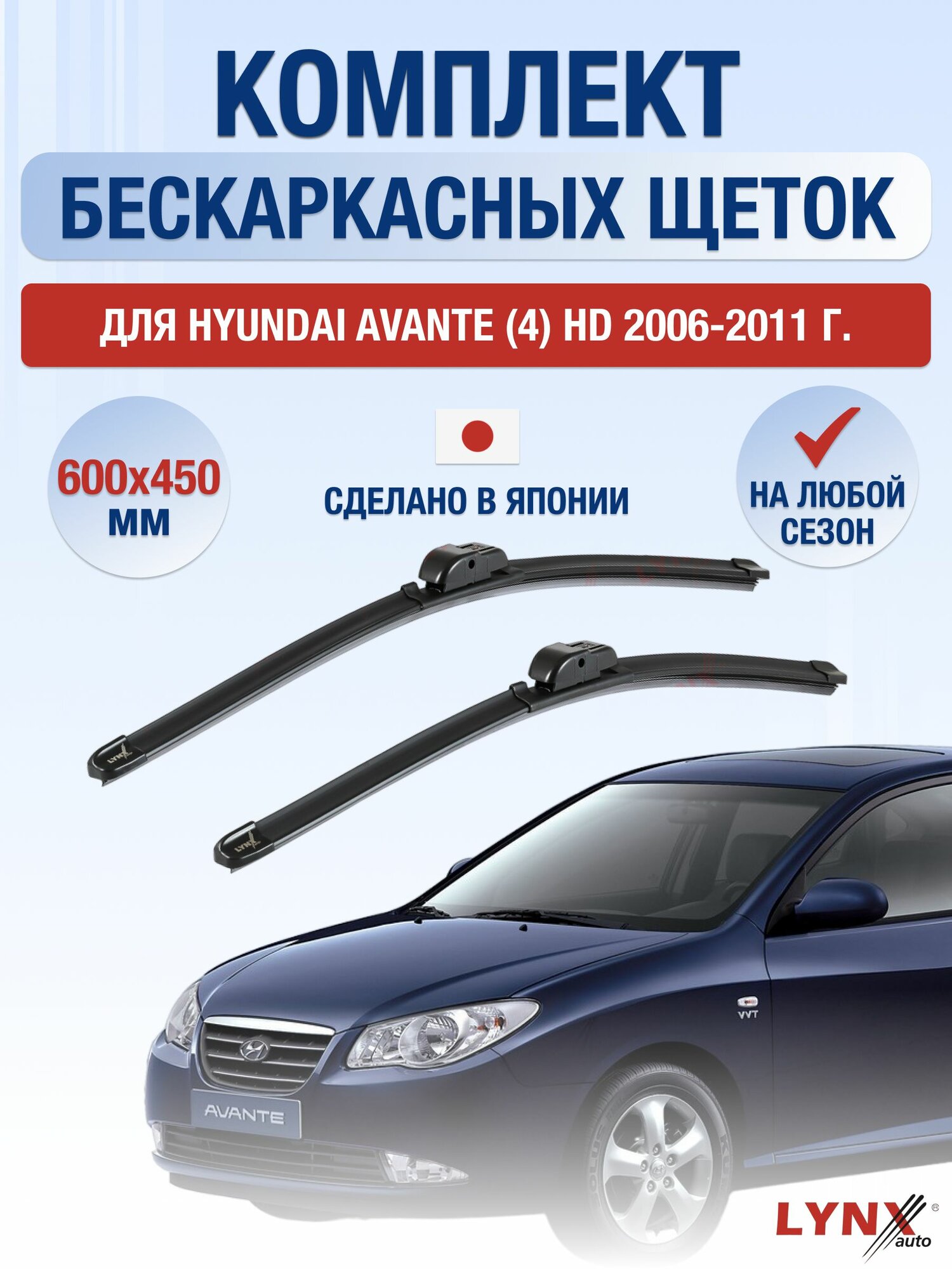 Купить Щетки стеклоочистителя для Hyundai Avante 4 (HD) / 2006 2007 2008 2009 2010 2011 / Комплект бескаркасных дворников 600 450 мм Хендай Аванте с доставкой по всей России.