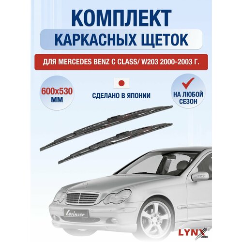 Каркасные автомобильные дворники 600/530мм LYNXauto, набор из 2 шт от официального дилера бренда легко устанавливаются на крепление Крючок (Hook / J-Hook) и идеально подходят для автомобиля марки Mercedes Benz C class / W203 2000, 2001, 2002, 2003 года выпуска. Этот комплект щеток стеклоочистителя обеспечивает беспроблемную работу и отличную очистку стекла вашего автомобиля.