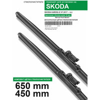 Комплект Бескаркасных Щеток Стеклоочистителя размеры: сторона водителя 650 мм, сторона пассажира 450 мм (65/45 см) - пара. Крепление стеклоочистителей – NARROW PUSH BUTTON (узкая кнопка!). Бескаркасная технология. Автодворники для пост гарантийного использования. Дворники стеклоочистителя подходят для установки на автомобили следующих марок: Skoda ( Шкода ). Размер щеток стеклоочистителя 650 450 мм ( 65 / 45 см ). Чистящее лезвие дворников - натуральная резина с каучуком. Высокие аэродинамические характеристики обеспечивают хорошую очистку поверхности и равномерное прилегание к стеклу по всей длине щётки! Деталь устойчива к жидкостям стеклоомывателя. Автоаксессуар прекрасно подойдет в качестве практичного подарка, презента владельцу машины. Комплект бескаркасных щеток стеклоочистителя применяется для: дворники Skoda Karoq 1 поколение с 07.2017 – г. в. ( дворники Шкода Карок ), ( дворники Шкода Корок ), ( дворники Шкода Karoq ). Дворники Karoq 1 поколение, дворники Карок 1 поколение, дворники Корок 1 поколение, дворники Skoda, дворники Шкода. Рекомендуем своевременно производить замену стеклоочистителей согласно техническим рекомендациям.