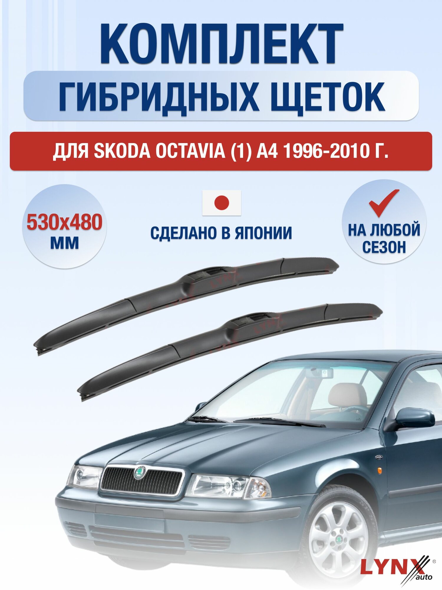 Гибридные автомобильные дворники 530/480мм LYNXauto, набор из 2 шт от официального дилера бренда легко устанавливаются на крепление Крючок (Hook / J-Hook) и идеально подходят для автомобиля марки Skoda Octavia (1) A4 1996, 1997, 1998, 1999, 2000, 2001, 2002, 2003, 2004, 2005, 2006, 2007, 2008, 2009, 2010 года выпуска. Этот комплект щеток стеклоочистителя обеспечивает беспроблемную работу и отличную очистку стекла вашего автомобиля.