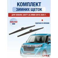 Зимние автомобильные дворники 500/450мм LYNXauto, набор из 2 шт от официального дилера бренда легко устанавливаются на крепление Крючок (Hook / J-Hook) и идеально подходят для автомобиля марки Subaru Justy (5) M900 2016, 2017, 2018, 2019, 2020, 2021, 2022, 2023, 2024, 2025 года выпуска. Этот комплект щеток стеклоочистителя обеспечивает беспроблемную работу и отличную очистку стекла вашего автомобиля.