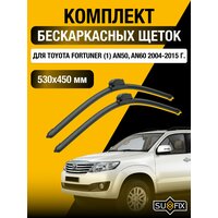 Бескаркасные автомобильные дворники 530/450мм SUFIX, набор из 2 шт от официального дилера бренда легко устанавливаются на крепление Крючок (Hook / J-Hook) и идеально подходят для автомобиля марки Toyota Fortuner (1) AN50, AN60 2004, 2005, 2006, 2007, 2008, 2009, 2010, 2011, 2012, 2013, 2014, 2015 года выпуска. Этот комплект щеток стеклоочистителя обеспечивает беспроблемную работу и отличную очистку стекла вашего автомобиля.