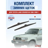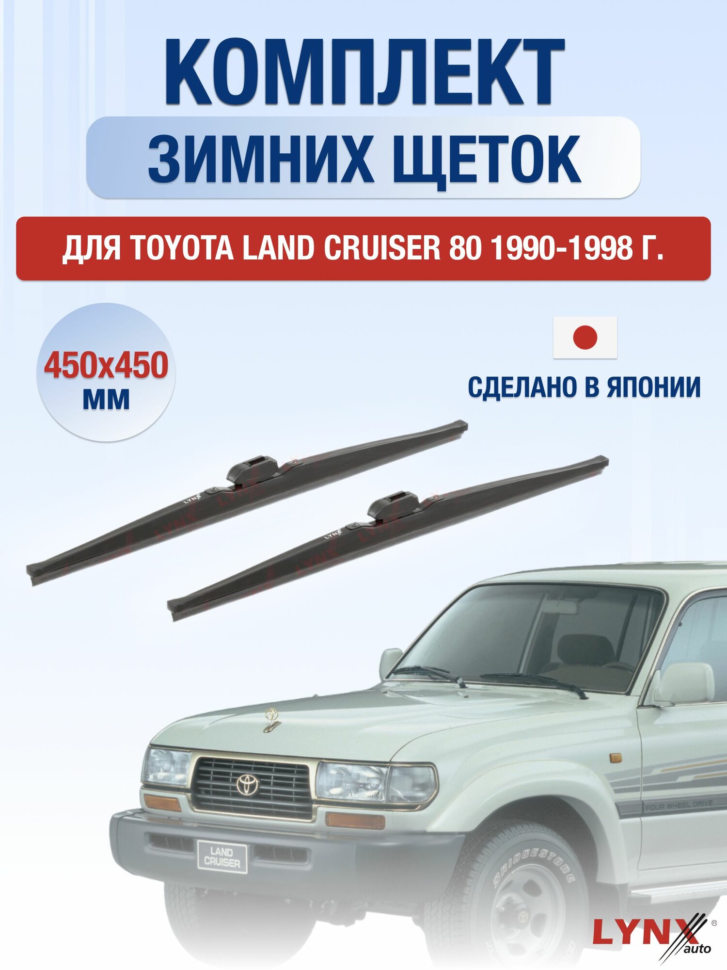 Зимние автомобильные дворники 450/450мм LYNXauto, набор из 2 шт от официального дилера бренда легко устанавливаются на крепление Крючок (Hook / J-Hook) и идеально подходят для автомобиля марки Toyota Land Cruiser 80 1990, 1991, 1992, 1993, 1994, 1995, 1996, 1997, 1998 года выпуска. Этот комплект щеток стеклоочистителя обеспечивает беспроблемную работу и отличную очистку стекла вашего автомобиля.