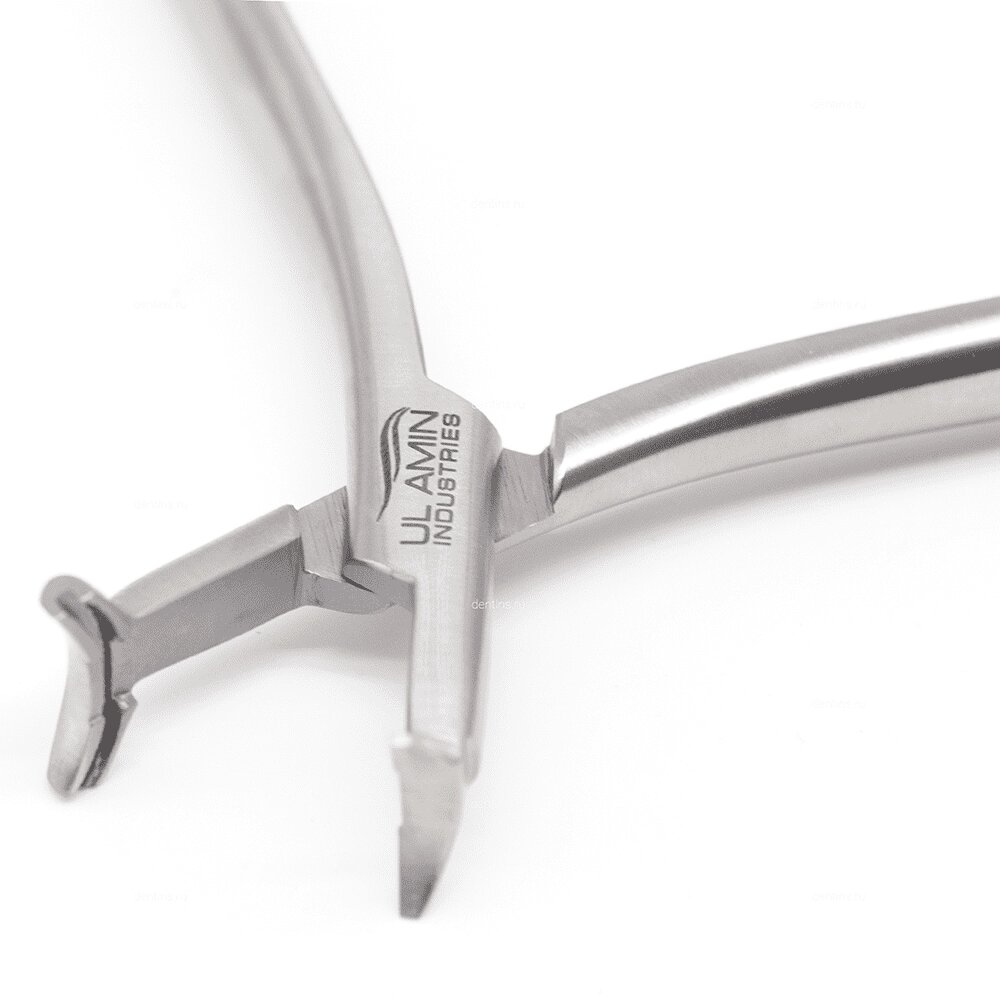 Эти щипцы используются для изгиба дистального участка дуги, что позволяет избежать травмирования щеки ее острым концом. Вес щипцов составляет всего 63 г, что делает их удобными в использовании.