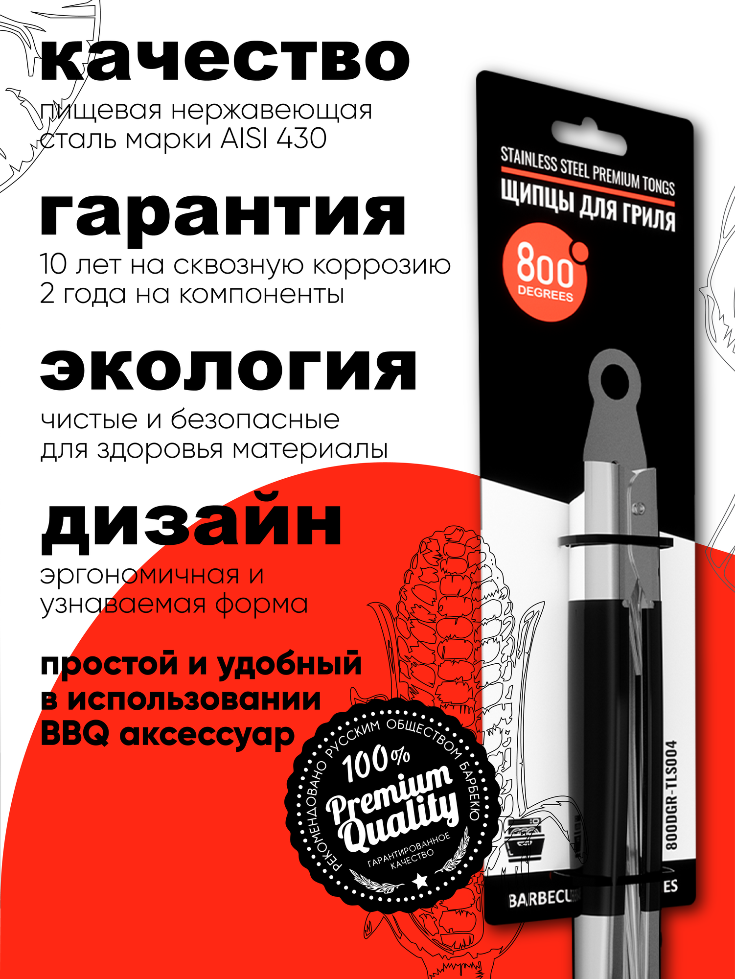 Щипцы для гриля Silver Line 800 Degrees (удлиненные, с фиксатором): сравнение цен, характеристики, фото, актуальное наличие и цены.