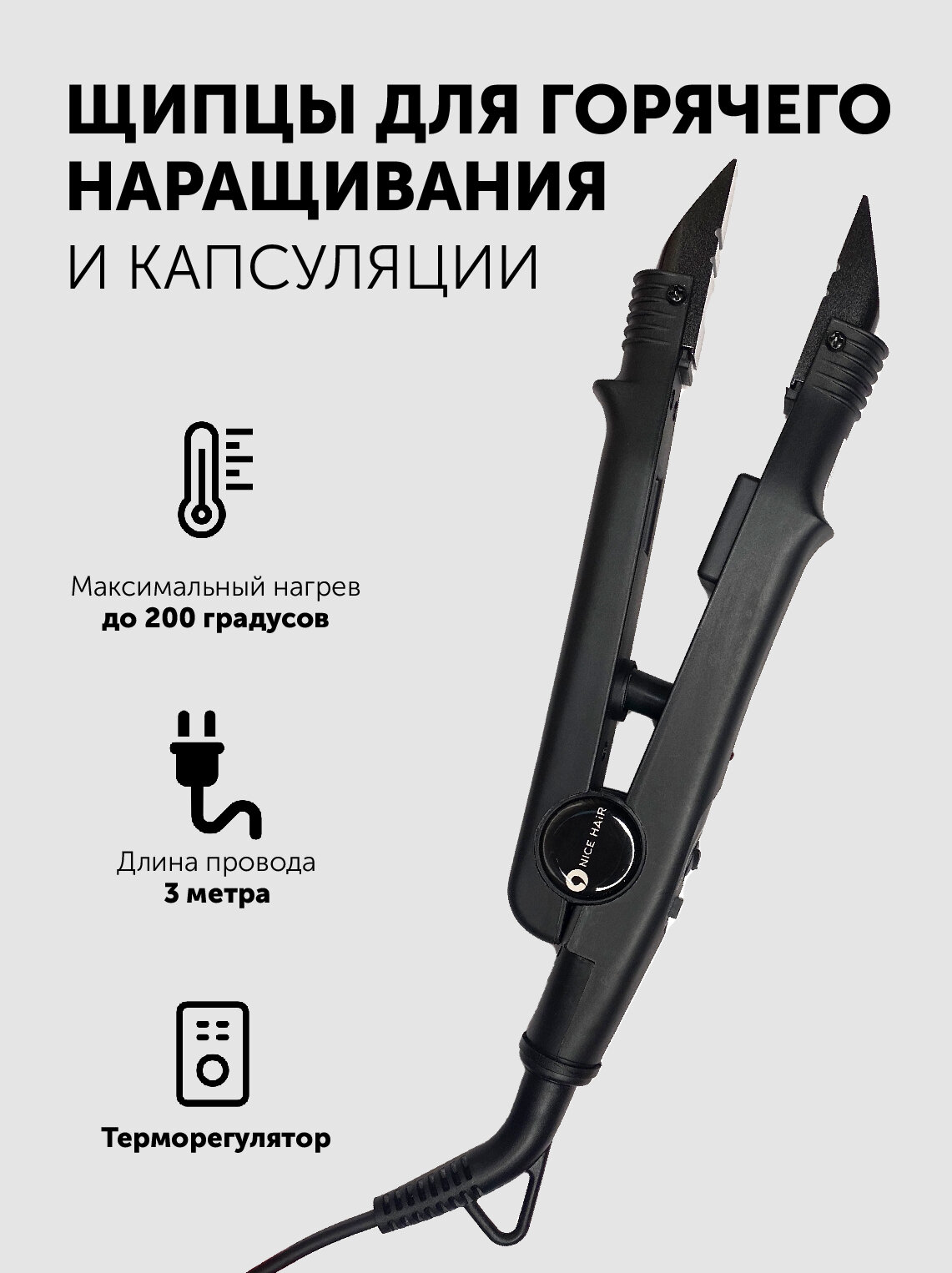 Щипцы для наращивания волос Nice Hair с терморегулятором - профессиональное оборудование для мастеров, которые ценят качество и комфорт.