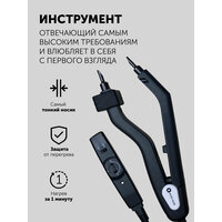 Корпус щипцов выполнен из металла с тефлоновым покрытием, что обеспечивает защиту рук мастера от высоких температур и позволяет работать много часов подряд без дискомфорта.