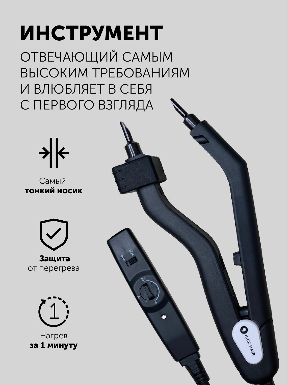 Щипцы для наращивания волос Nice Hair с терморегулятором - профессиональное оборудование для мастеров, которые ценят качество и комфорт в работе.