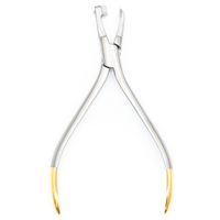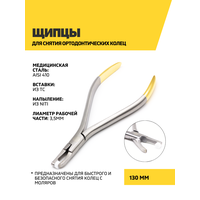 Щипцы для снятия ортодонтических колец специально разработаны для быстрого и безопасного снятия колец с моляров. Одна рабочая часть щипцов выполнена в виде пластмассовой опорной площадки, вторая - заостренная металлическая для захвата кольца.